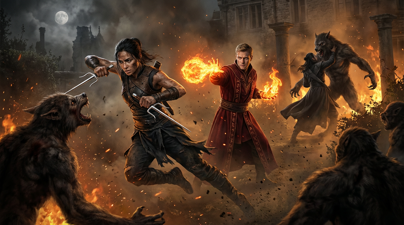 Sem pestanejar, o casal corre para a entrada da mansão, apenas para ter a certeza de mais problemas no caminho. Dois lobisomens surgem à frente. Dois velhos inimigos.