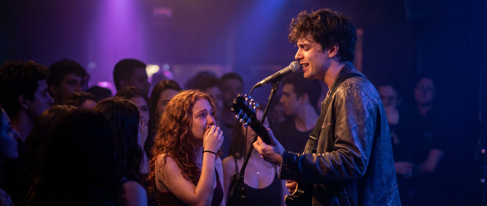 Emendando uma música a outra e alternando estilos, Kaíque vai dominando a noite na boate e amolecendo o duro, porém doce, coração da ruiva.