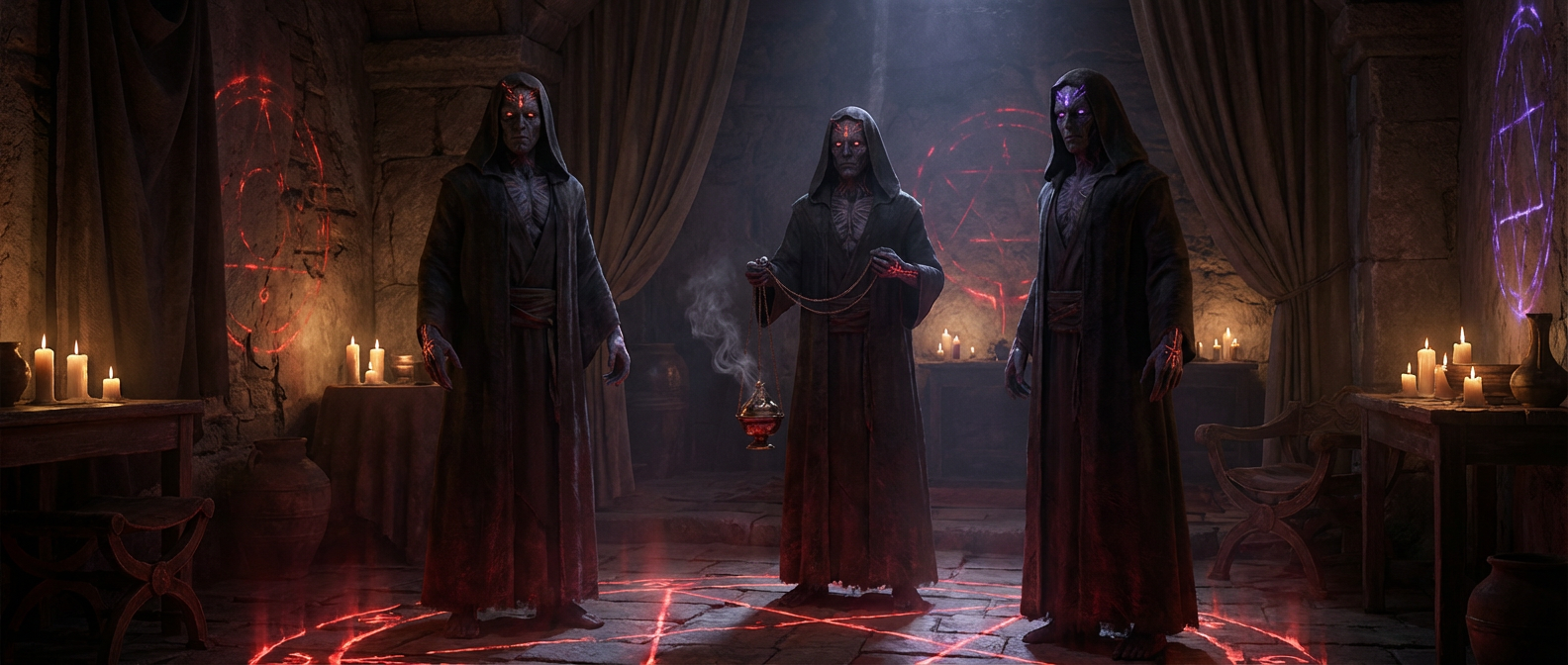 “Tuleal e Azáx, preparem tudo para o ritual. Agora, com o sacerdote, podemos invocar nossa rainha Lilith para trazer mestre Lúcifer a este mundo.”
